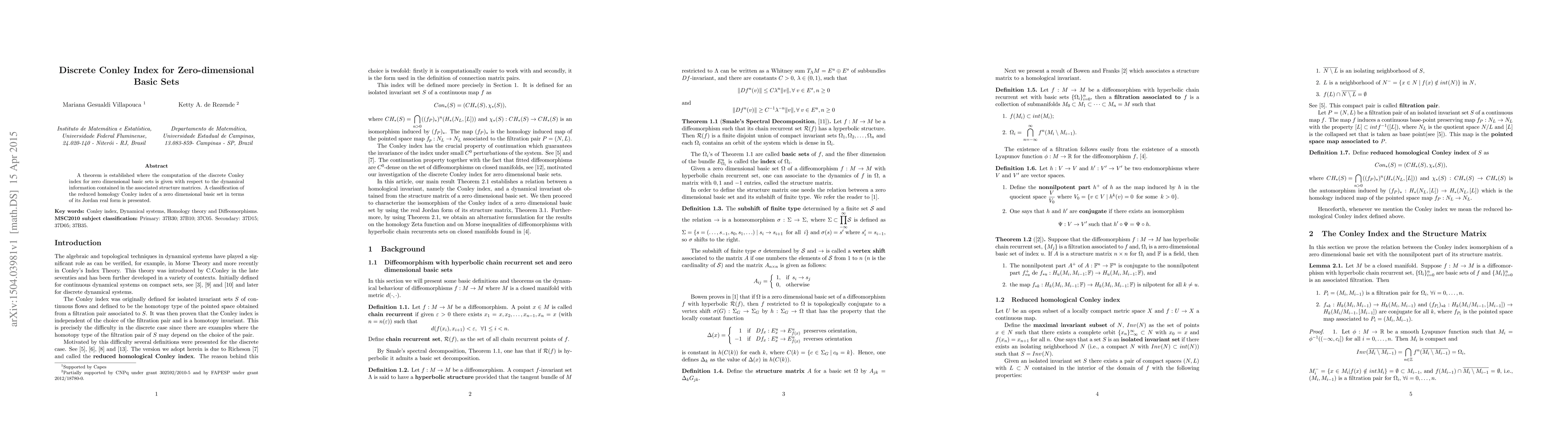 This paper establishes a method for computing the discrete Conley index for zero-dimensional basic sets, linking it to the dynamical information in structure matrices, and classifies the reduced homology Conley index based on the Jordan real form.