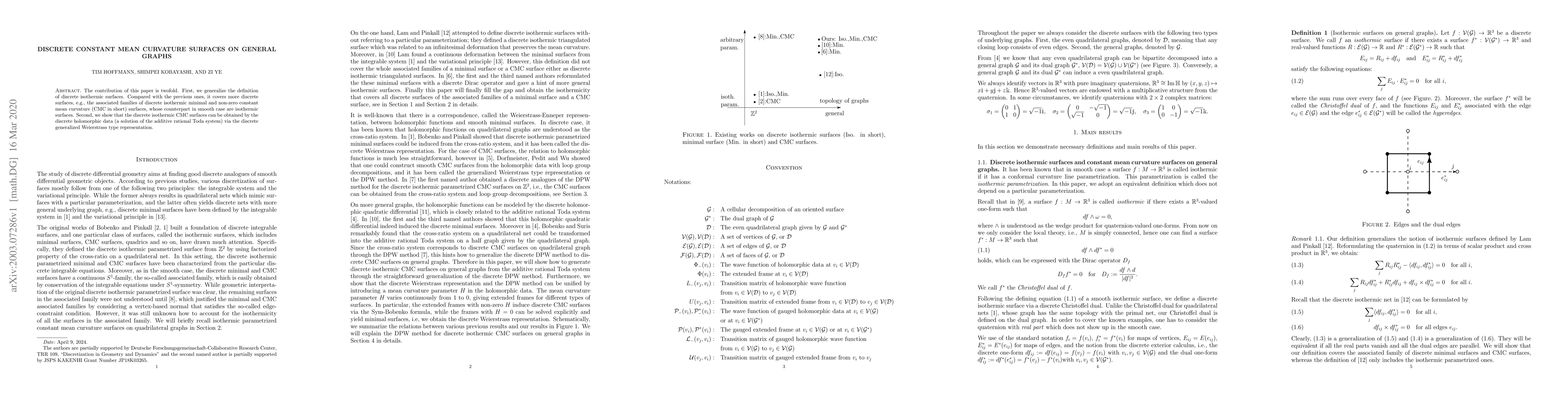 This paper generalizes the definition of discrete isothermic surfaces to include families of discrete minimal and non-zero constant mean curvature surfaces, and demonstrates their derivation from discrete holomorphic data through a discrete generalized Weierstrass representation.