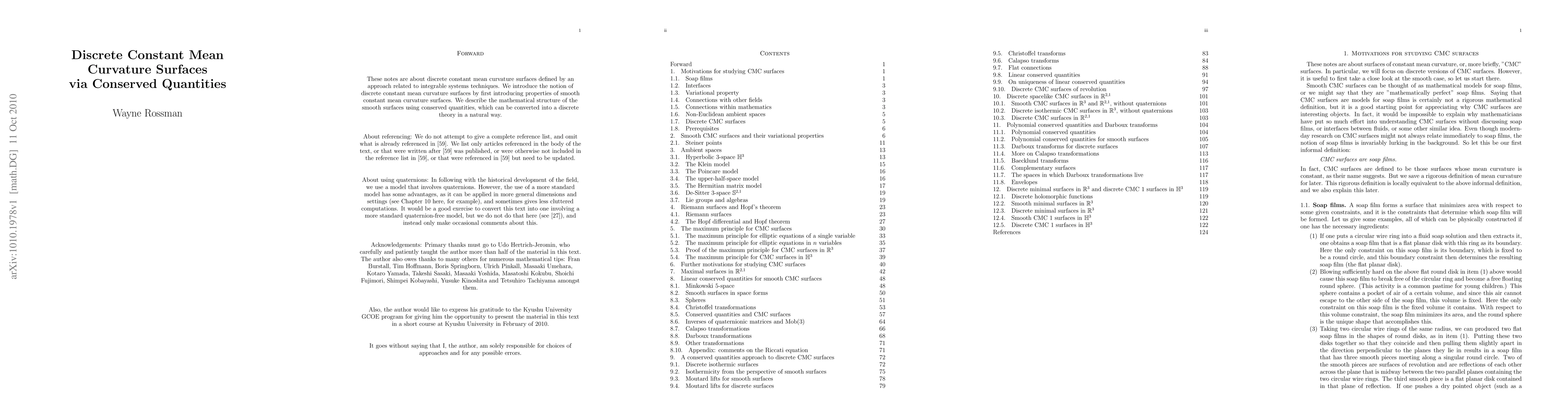 This paper surveys discrete constant mean curvature surfaces derived from integrable systems techniques, introducing the concept through properties of smooth surfaces and their conserved quantities, which are then adapted into a discrete theory.