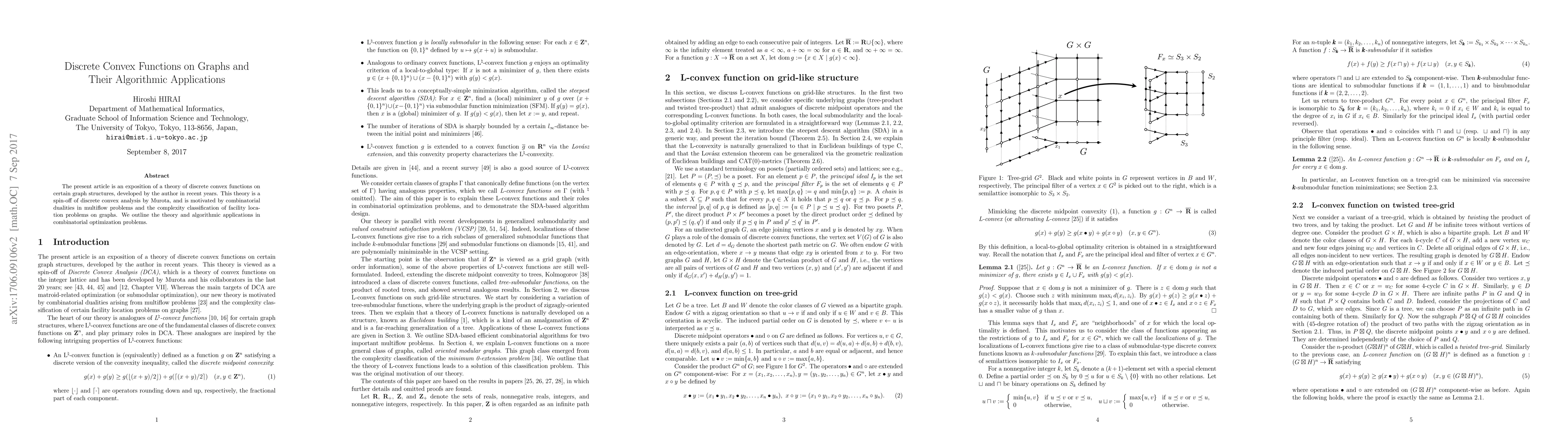 The present article is an exposition of a theory of discrete convex functions on certain graph structures, developed by the author in recent years. This theory is a spin-off of discrete convex analysis by Murota, and is motivated by combinatorial dualities in multiflow problems and the complexity classification of facility location problems on graphs. We outline the theory and algorithmic applications in combinatorial optimization problems.