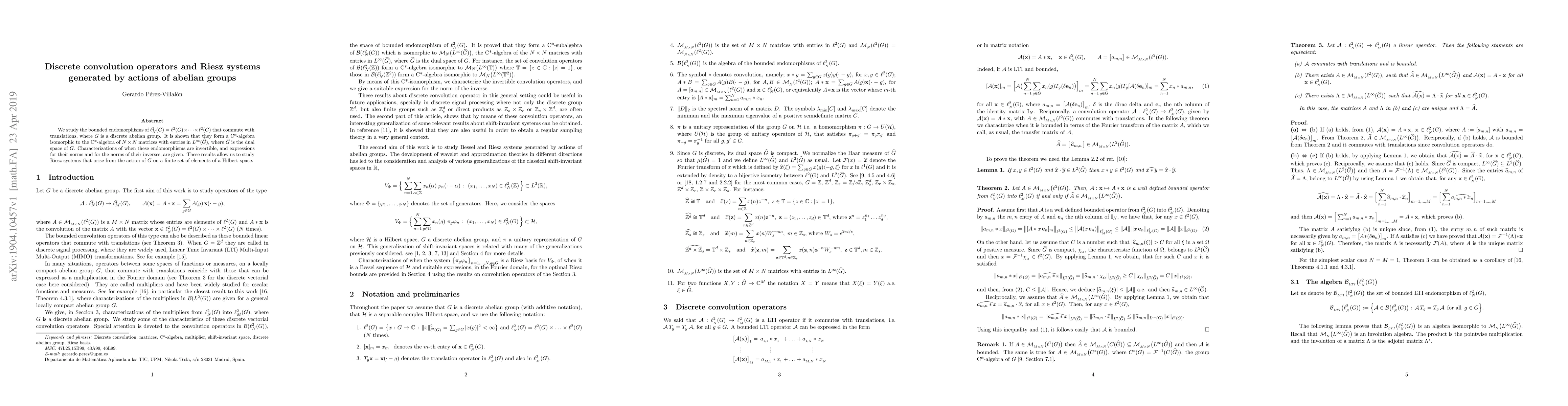 We study the bounded endomorphisms of $\ell_{N}^2(G)=\ell^2(G)\times \dots \times\ell^2(G)$ that commute with translations, where $G$ is a discrete abelian group. It is shown that they form a C*-algebra isomorphic to the C*-algebra of $N\times N$ matrices with entries in $L^\infty(\widehat{G})$, where $\widehat{G}$ is the dual space of $G$. Characterizations of when these endomorphisms are invertible, and expressions for their norms and for the norms of their inverses, are given. These results allow us to study Riesz systems that arise from the action of $ G $ on a finite set of elements of a Hilbert space.