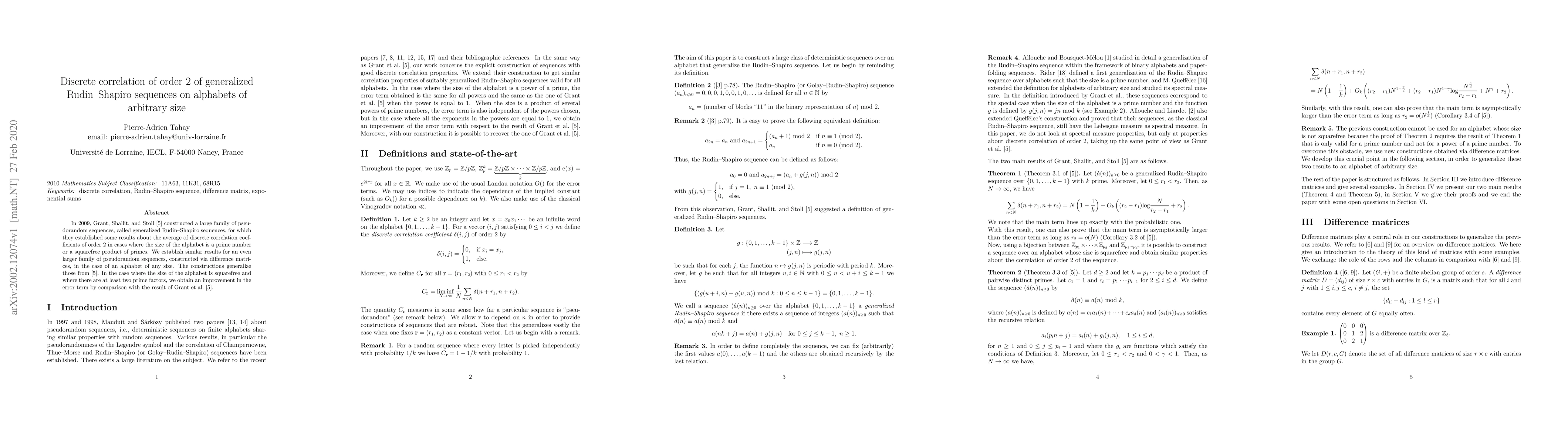 In 2009, Grant, Shallit, and Stoll constructed a large family of pseudorandom sequences, called generalized Rudin--Shapiro sequences, for which they established some results about the average of discrete correlation coefficients of order 2 in cases where the size of the alphabet is a prime number or a squarefree product of primes. We establish similar results for an even larger family of pseudorandom sequences, constructed via difference matrices, in the case of an alphabet of any size. The constructions generalize those from Grant et al. In the case where the size of the alphabet is squarefree and where there are at least two prime factors, we obtain an improvement in the error term by comparison with the result of Grant et al.