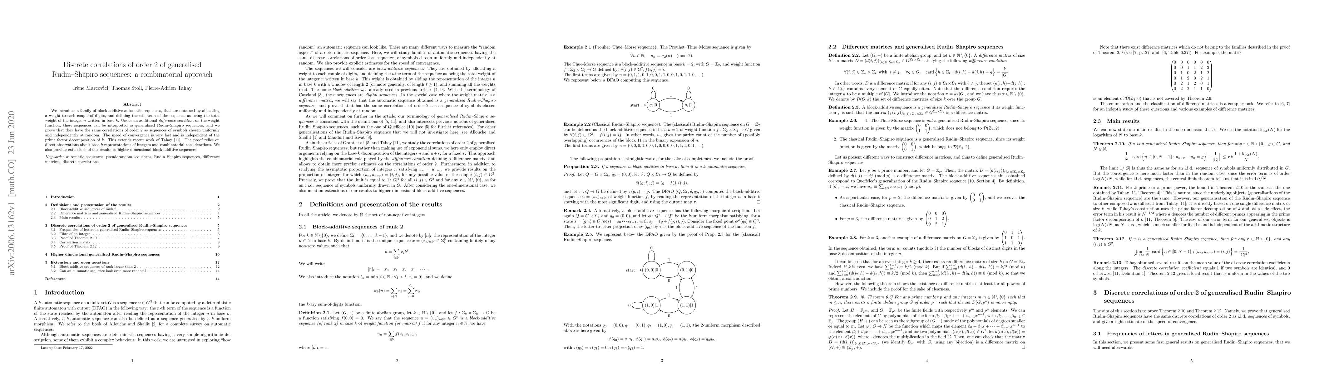 This paper introduces generalised Rudin-Shapiro sequences derived from block-additive automatic sequences, proving they exhibit the same order 2 correlations as random sequences. The convergence speed is rapid and independent of $k$'s prime factors, extending previous work and employing combinatorial and base-$k$ representation analysis.