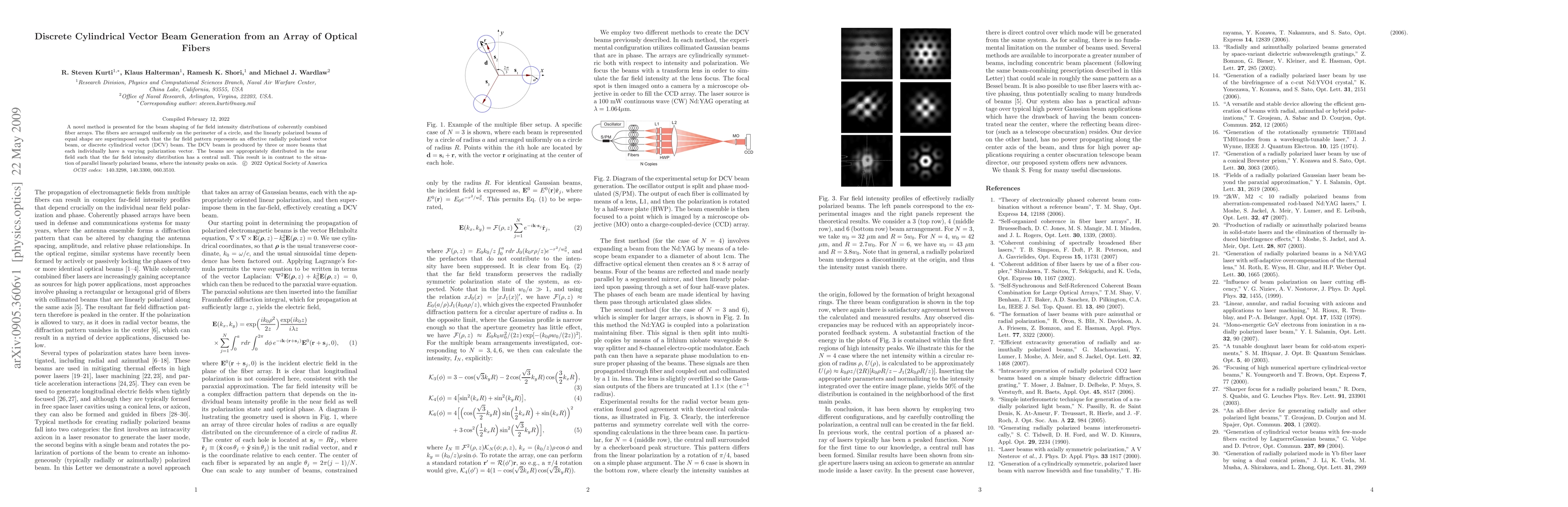 This paper introduces a method for generating discrete cylindrical vector beams from an array of optical fibers, where the fibers are arranged in a circular pattern. The combined beams create a far-field radially polarized vector beam with a central null, differing from the parallel linearly polarized beams that peak on axis.