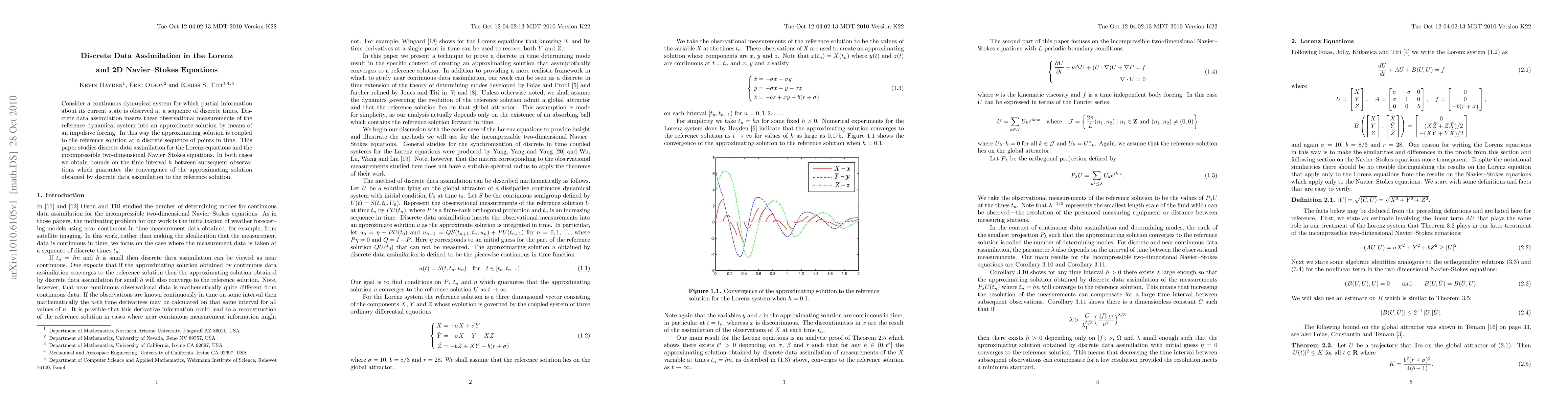 This paper investigates discrete data assimilation techniques for the Lorenz equations and the 2D Navier-Stokes equations, establishing bounds on observation intervals that ensure convergence of the assimilated solutions to the true system states.