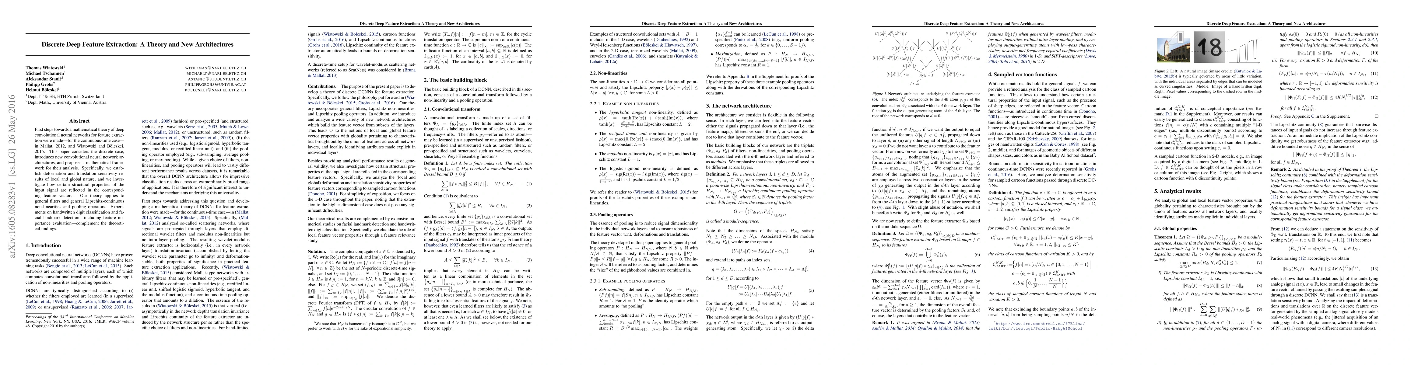 The paper presents novel convolutional neural network architectures and a comprehensive mathematical framework for analyzing their feature extraction properties, including deformation and translation sensitivity.