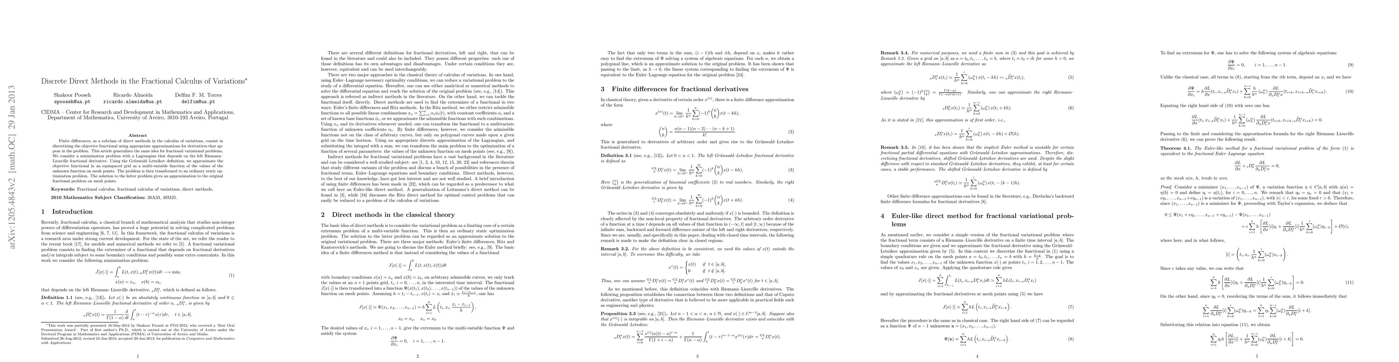 Finite differences, as a subclass of direct methods in the calculus of variations, consist in discretizing the objective functional using appropriate approximations for derivatives that appear in the problem. This article generalizes the same idea for fractional variational problems. We consider a minimization problem with a Lagrangian that depends on the left Riemann-Liouville fractional derivative. Using the Grunwald-Letnikov definition, we approximate the objective functional in an equispaced grid as a multi-variable function of the values of the unknown function on mesh points. The problem is then transformed to an ordinary static optimization problem. The solution to the latter problem gives an approximation to the original fractional problem on mesh points.