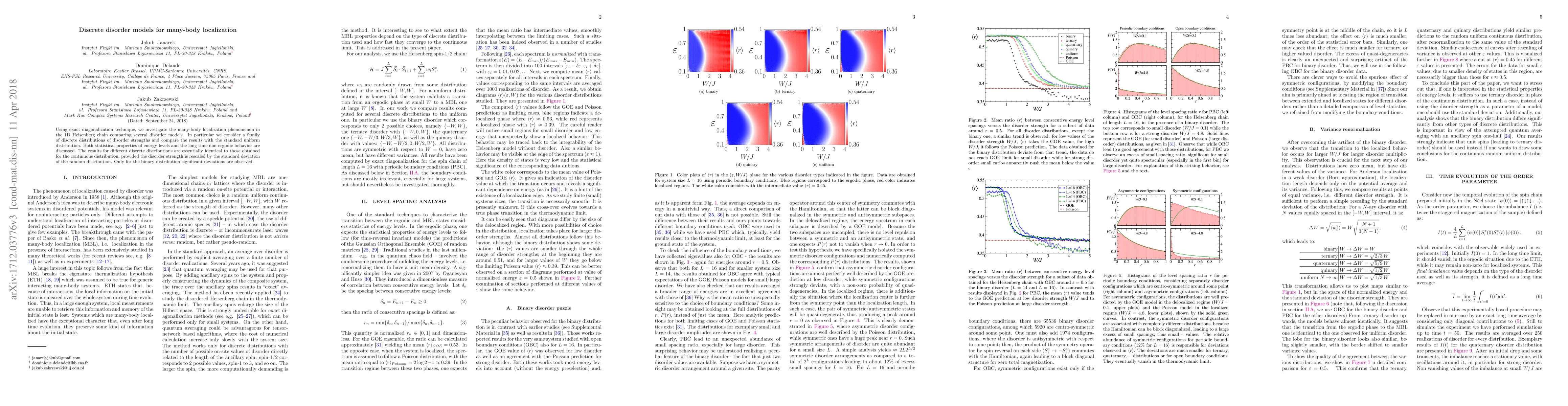 Researchers used exact diagonalization to study many-body localization in a 1D Heisenberg chain with different disorder models, finding that most discrete distributions produce similar results to the continuous distribution when normalized by standard deviation.