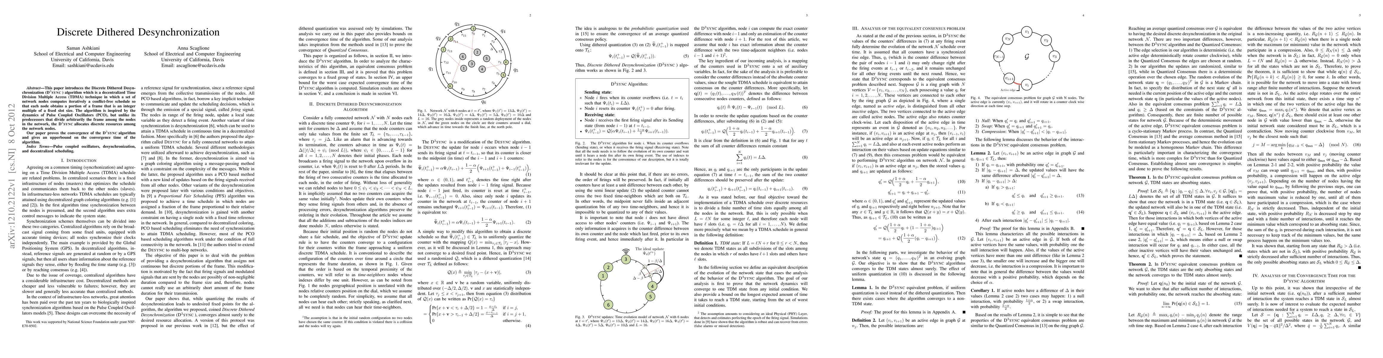 This paper introduces the Discrete Dithered Desynchronization (D3sync) algorithm which is a decentralized Time Division Multiple Access (TDMA) technique in which a set of network nodes computes iteratively a conflict-free schedule so that each node obtains a portion of a frame that is an integer multiple of a fixed slot size. The algorithm is inspired by the dynamics of Pulse Coupled Oscillators (PCO), but unlike its predecessors that divide arbitrarily the frame among the nodes in the network, the D3sync allocates discrete resources among the network nodes. Our paper proves the convergence of the D3sync algorithm and gives an upper bound on the convergence time of the algorithm.