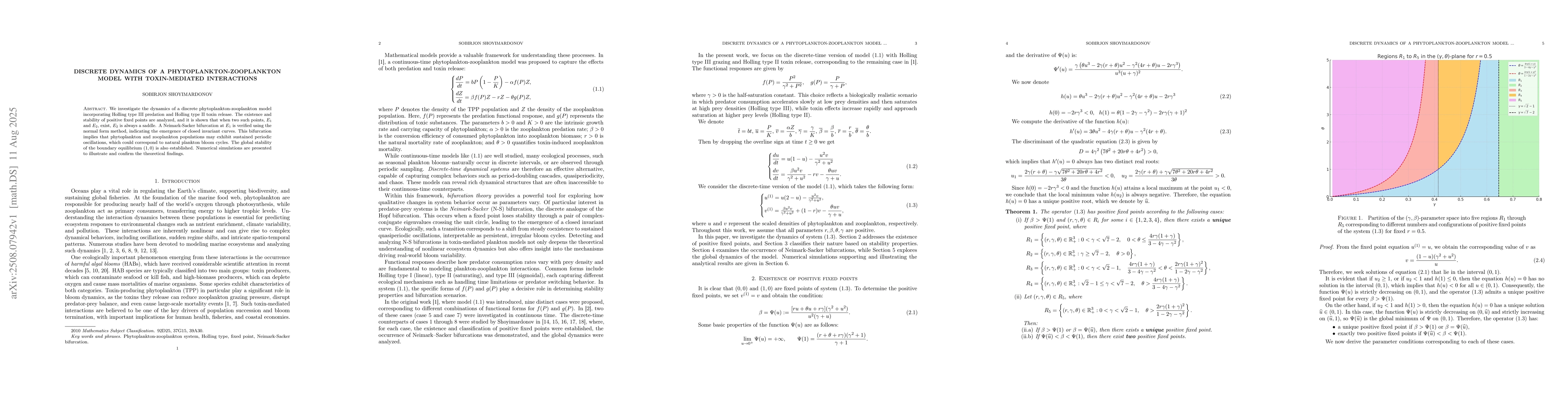 We investigate the dynamics of a discrete phytoplankton-zooplankton model incorporating Holling type~III predation and Holling type~II toxin release. The existence and stability of positive fixed points are analyzed, and it is shown that when two such points, $E_1$ and $E_2$, exist, $E_2$ is always a saddle. A Neimark-Sacker bifurcation at $E_1$ is verified using the normal form method, indicating the emergence of closed invariant curves. This bifurcation implies that phytoplankton and zooplankton populations may exhibit sustained periodic oscillations, which could correspond to natural plankton bloom cycles. The global stability of the boundary equilibrium $(1,0)$ is also established. Numerical simulations are presented to illustrate and confirm the theoretical findings.