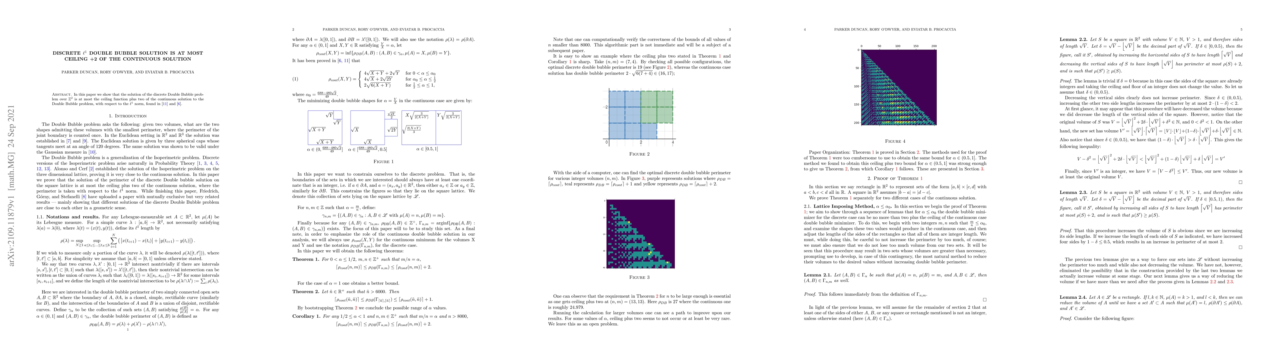 In this paper we show that the solution of the discrete Double Bubble problem over $\mathbb{Z}^2$ is at most the ceiling function plus two of the continuous solution to the Double Bubble problem, with respect to the $\ell^1$ norm, found in \cite{morgan1998wulff} and \cite{duncan2020elementary}.