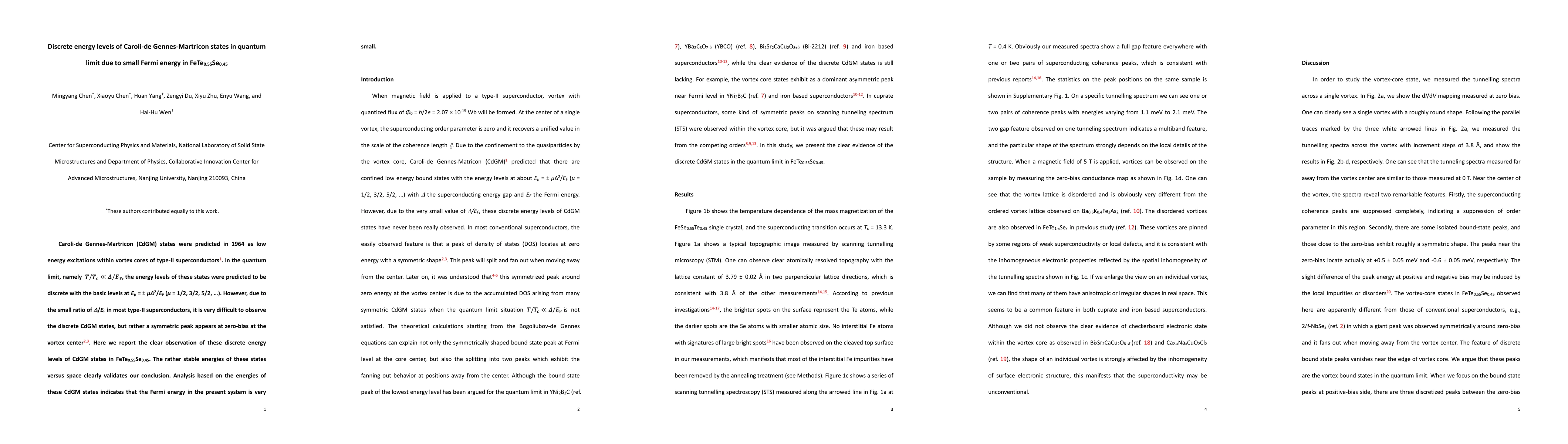 Scientists have observed discrete energy levels of Caroli-de Gennes-Martricon states in a type-II superconductor, FeTe$_{0.55}$Se$_{0.45}$. The discovery validates previous predictions and indicates a very small Fermi energy.