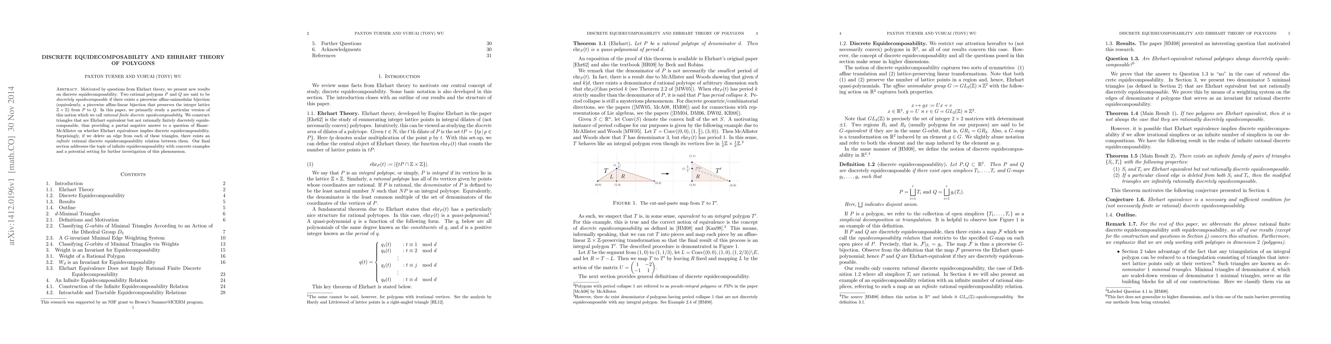 This paper explores discrete equidecomposability of rational polygons, specifically focusing on rational finite discrete equidecomposability. It finds that while some triangles are Ehrhart equivalent, they are not rationally finitely discretely equidecomposable, challenging a related conjecture. However, removing an edge from each triangle reveals an infinite rational discrete equidecomposability relation between them.