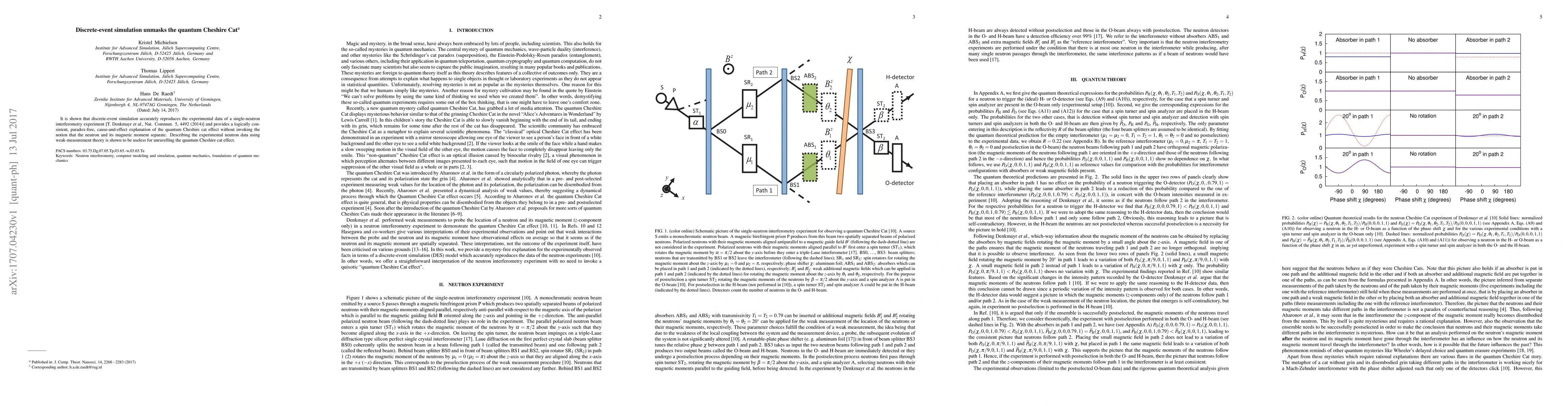 This paper demonstrates that discrete-event simulation can accurately replicate the results of a single-neutron interferometry experiment, offering a coherent explanation of the quantum Cheshire cat effect without the need for the controversial separation of the neutron and its magnetic moment. It concludes that weak-measurement theory is ineffective in explaining this phenomenon.