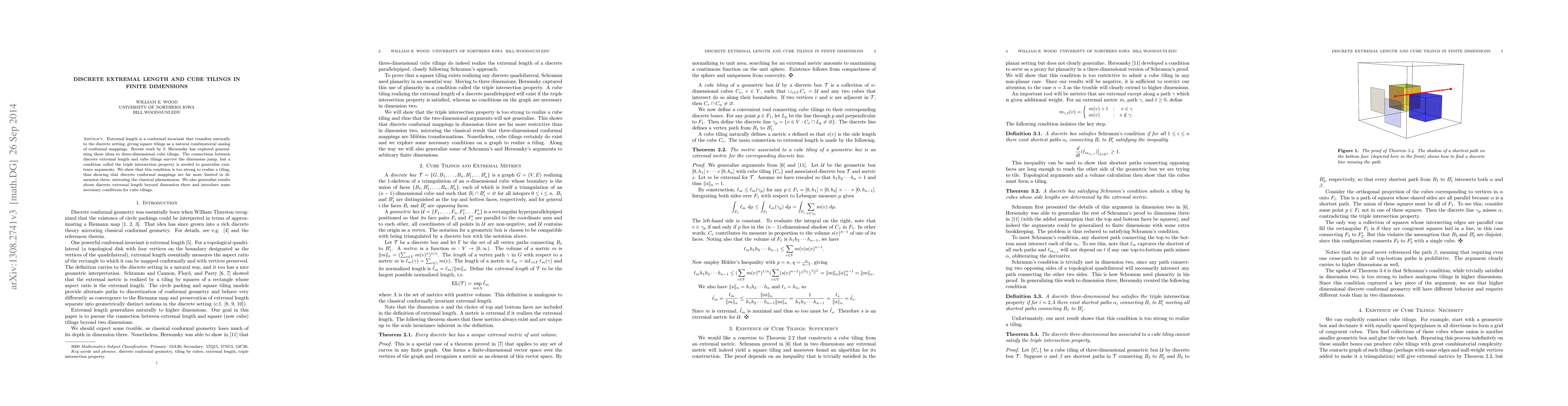 This paper explores the generalization of discrete extremal length to three-dimensional cube tilings, revealing that the triple intersection property is too restrictive for tiling existence. It demonstrates that discrete conformal mappings are significantly more limited in three dimensions compared to lower dimensions.