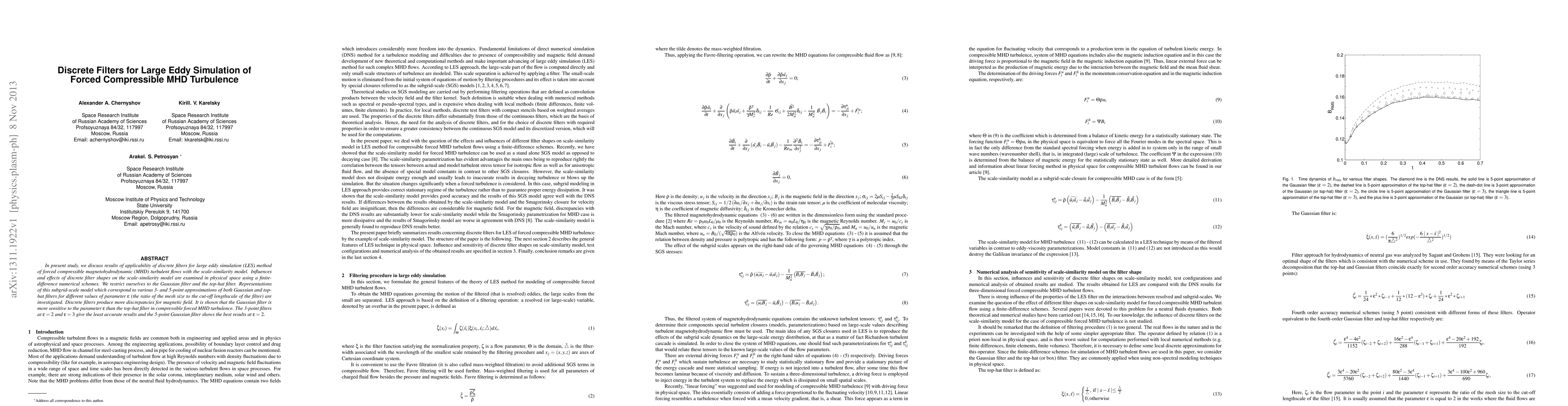 This paper investigates the use of discrete filters in the large eddy simulation of forced compressible magnetohydrodynamic turbulence, focusing on the Gaussian and top-hat filters. The study finds that the Gaussian filter is more sensitive to the parameter $\epsilon$ than the top-hat filter, with the 5-point Gaussian filter yielding the best results at $\epsilon=2$.