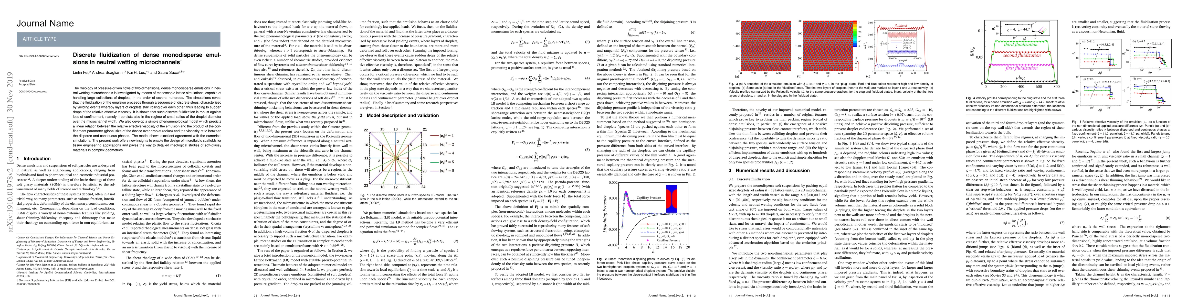 Researchers study how dense emulsions flow through microchannels, discovering that fluidization happens in discrete steps with sudden drops in viscosity, even at low confinement ratios. A simple model predicts a linear relationship between viscosity and the ratio of device size to droplet radius.