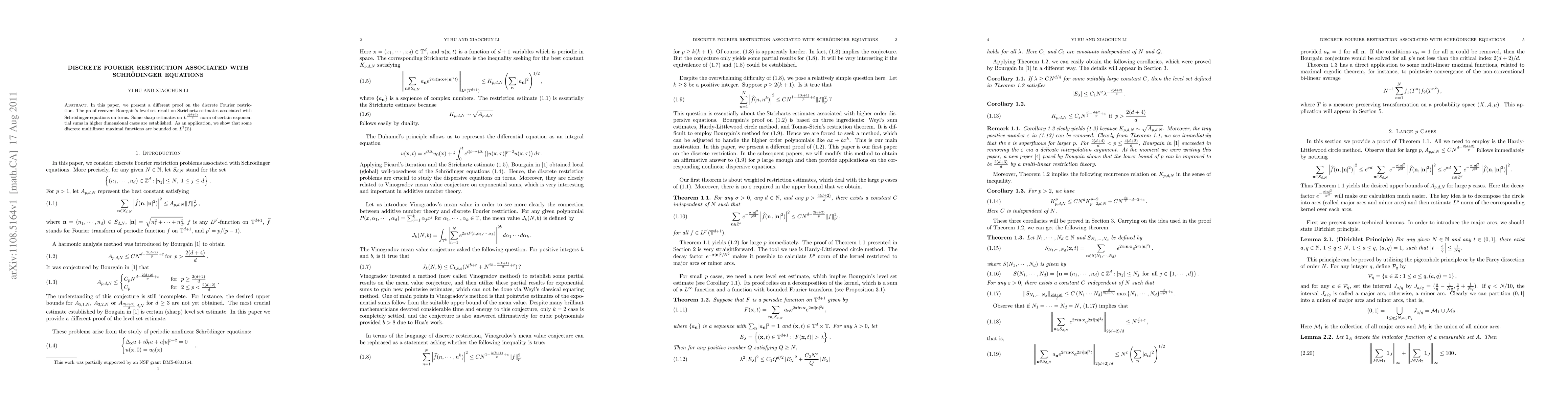 This paper provides an alternative proof for the discrete Fourier restriction, recovering Bourgain's level set result on Strichartz estimates for Schrödinger equations on torus. It establishes sharp estimates for $L^{\frac{2(d+2)}{d}}$ norms of exponential sums and demonstrates the boundedness of certain discrete multilinear maximal functions on $L^2(\mathbb Z)$.