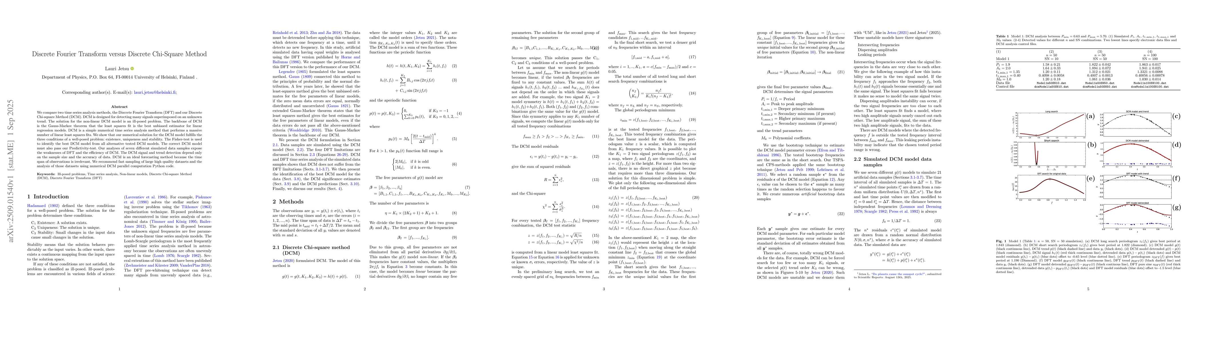 We compare two time series analysis methods, the Discrete Fourier Transform (DFT) and our Discrete Chi-square Method (DCM). DCM is designed for detecting many signals superimposed on an unknown trend. The solution for the non-linear DCM model is an ill-posed problem. The backbone of DCM is the Gauss-Markov theorem that the least squares fit is the best unbiased estimator for linear regression models. DCM is a simple numerical time series analysis method that performs a massive number of linear least squares fits. We show that our numerical solution for the DCM model fulfills the three conditions of a well-posed problem: existence, uniqueness and stability. The Fisher-test is used to identify the best DCM model from all alternative tested DCM models. The correct DCM model must also pass our Predictivity-test. Our analyses of seven different simulated data samples expose the weaknesses of DFT and the efficiency of DCM. The DCM signal and trend detection depend only on the sample size and the accuracy of data. DCM is an ideal forecasting method because the time span of observations is irrelevant. We recommend fast sampling of large high quality datasets and the analysis of those datasets using numerical DCM parallel computation Python code.