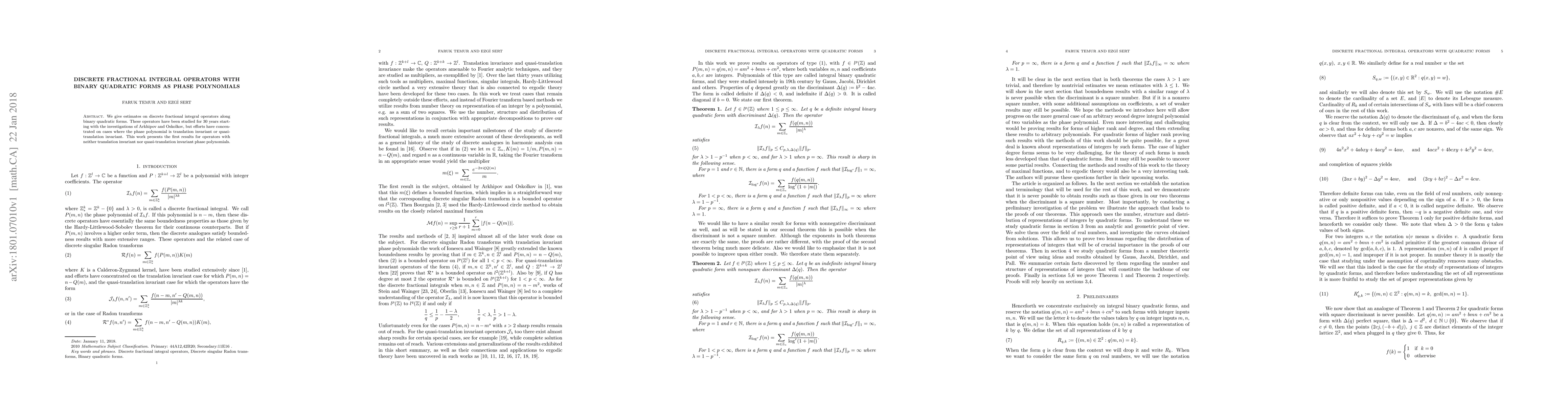 A discrete fractional integral operator is defined on a subset of the integers using a binary quadratic form.