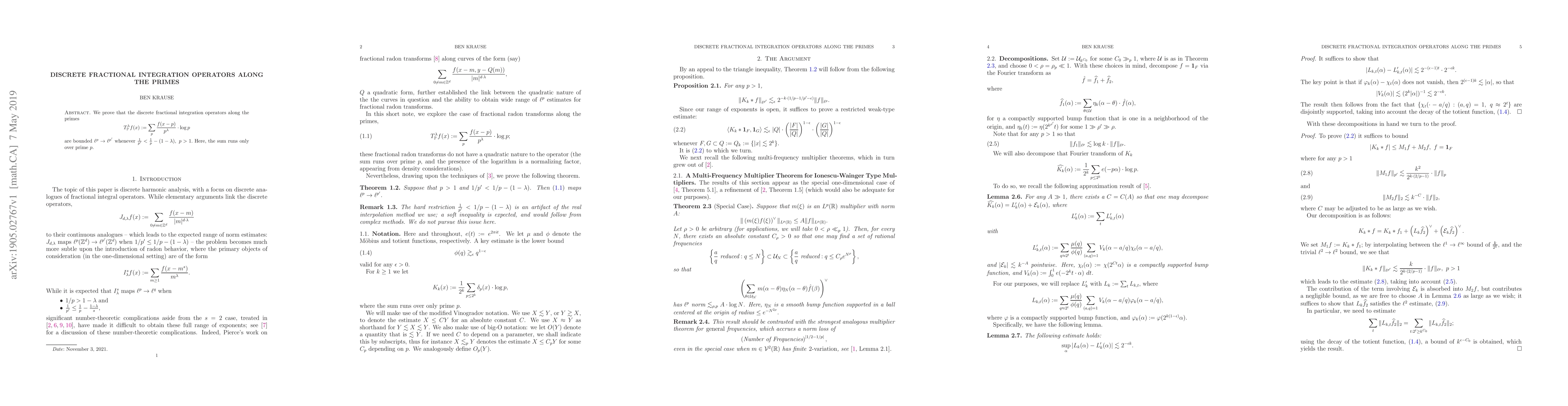 The discrete fractional integration operators along primes are shown to be bounded from $ ilde{p}$ to $ ilde{p'}$ under certain conditions, with implications for the study of fractal geometry and analysis.