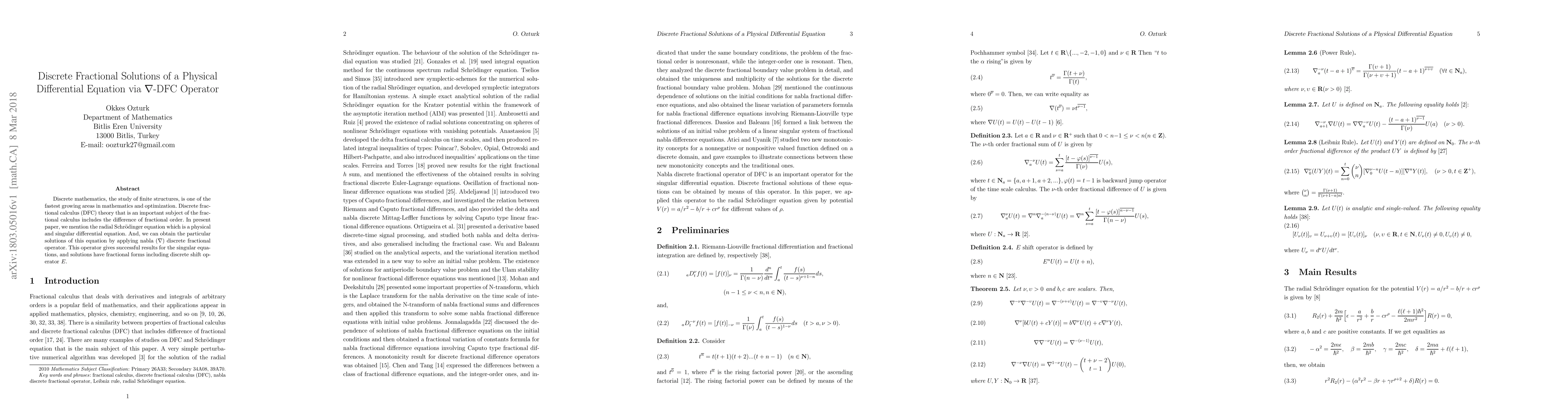 The research presents a unique approach by combining discrete fractional calculus with the nabla operator to solve a physical differential equation, offering new insights into the applicability of fractional calculus in physics.
