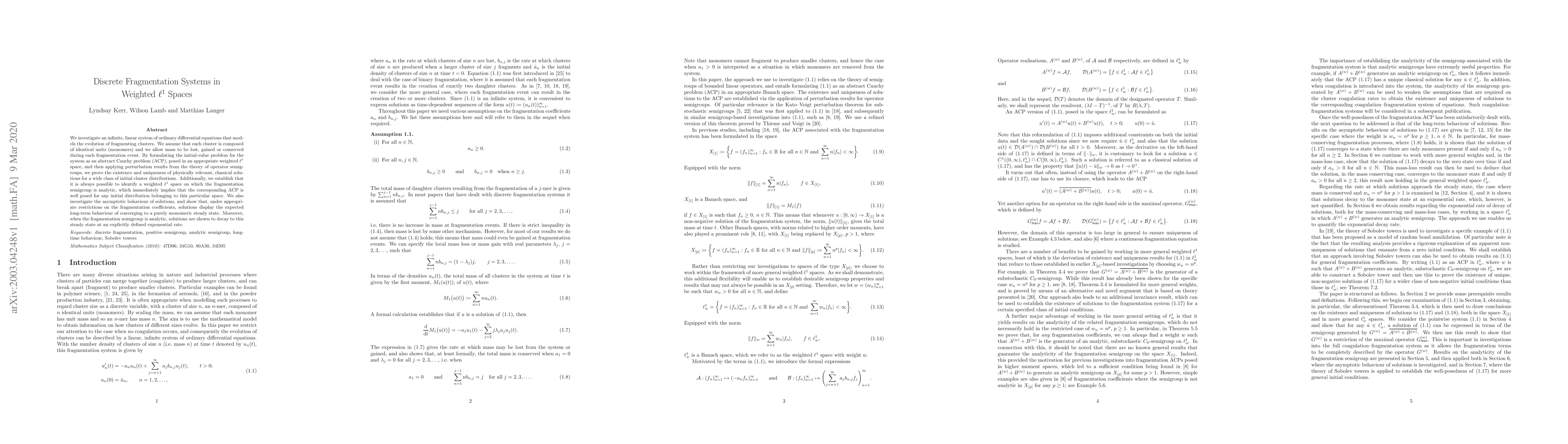 This paper investigates a mathematical model of fragmenting clusters in physics, proving the existence and uniqueness of solutions to an infinite system of differential equations for various initial conditions. It also shows that under certain conditions, solutions converge to a steady state at an exponential rate.