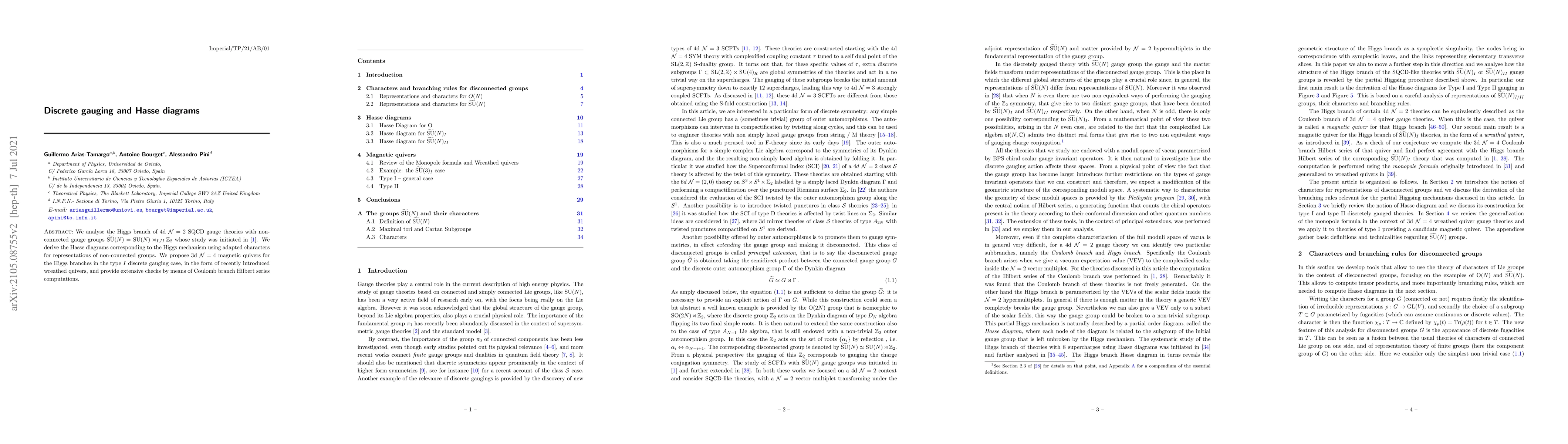 This paper analyzes the Higgs branch of 4d $\mathcal{N}=2$ SQCD gauge theories with non-connected gauge groups, deriving Hasse diagrams for the Higgs mechanism using adapted characters. It proposes 3d $\mathcal{N}=4$ magnetic quivers for the Higgs branches in the type I discrete gauging case, validated by Coulomb branch Hilbert series computations.