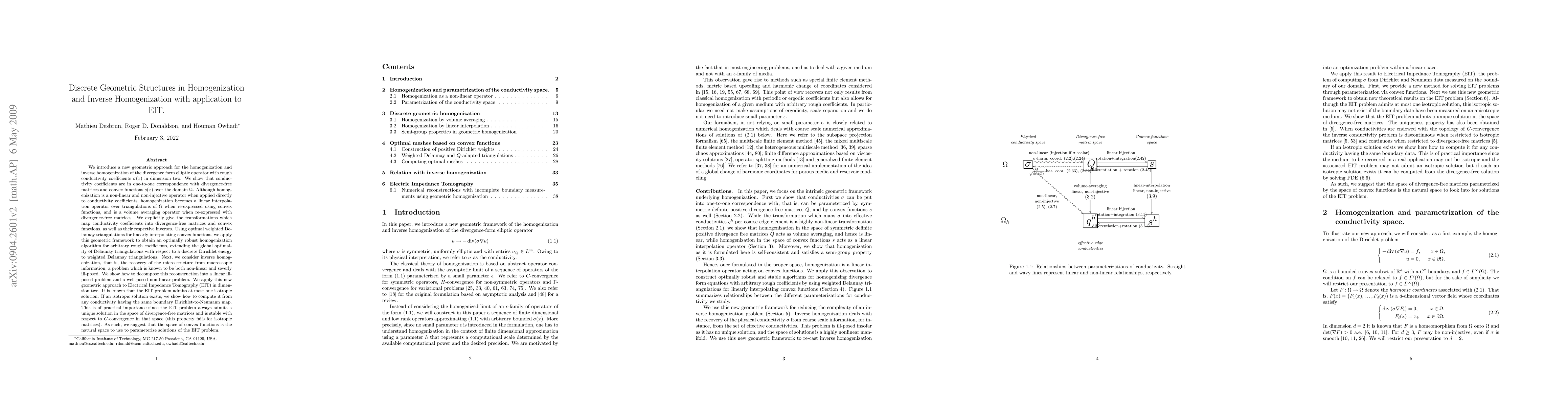 We introduce a new geometric approach for the homogenization and inverse homogenization of the divergence form elliptic operator with rough conductivity coefficients $\sigma(x)$ in dimension two. We show that conductivity coefficients are in one-to-one correspondence with divergence-free matrices and convex functions $s(x)$ over the domain $\Omega$. Although homogenization is a non-linear and non-injective operator when applied directly to conductivity coefficients, homogenization becomes a linear interpolation operator over triangulations of $\Omega$ when re-expressed using convex functions, and is a volume averaging operator when re-expressed with divergence-free matrices. Using optimal weighted Delaunay triangulations for linearly interpolating convex functions, we obtain an optimally robust homogenization algorithm for arbitrary rough coefficients. Next, we consider inverse homogenization and show how to decompose it into a linear ill-posed problem and a well-posed non-linear problem. We apply this new geometric approach to Electrical Impedance Tomography (EIT). It is known that the EIT problem admits at most one isotropic solution. If an isotropic solution exists, we show how to compute it from any conductivity having the same boundary Dirichlet-to-Neumann map. It is known that the EIT problem admits a unique (stable with respect to $G$-convergence) solution in the space of divergence-free matrices. As such we suggest that the space of convex functions is the natural space in which to parameterize solutions of the EIT problem.