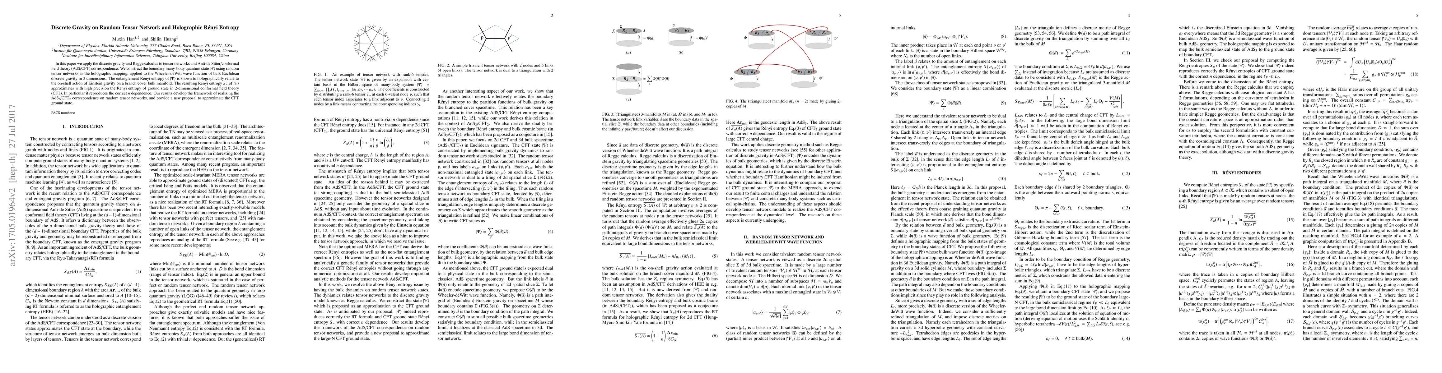 This paper applies discrete gravity and Regge calculus to tensor networks, constructing a boundary quantum state using random tensor networks for the AdS/CFT correspondence. It shows that the entanglement Rényi entropy of this state holographically relates to the on-shell action of Einstein gravity, accurately approximating the Rényi entropy of the ground state in 2D CFT.