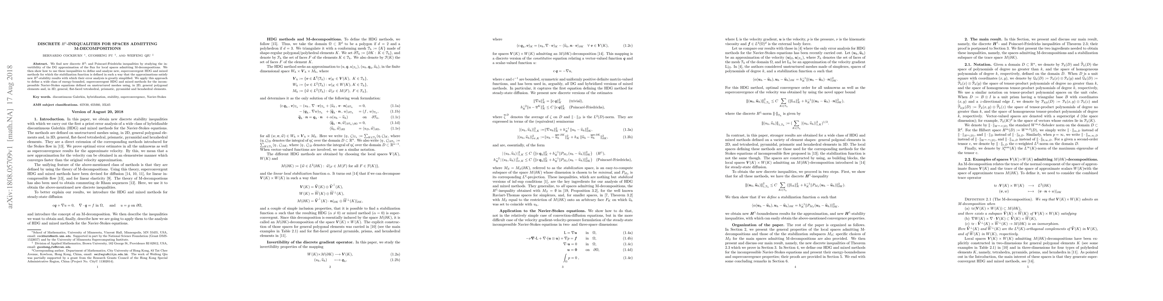 Researchers develop new discrete H^1-inequalities for spaces allowing M-decompositions, enabling superconvergent HDG and mixed methods with simplified error analysis for incompressible Navier-Stokes equations on unstructured meshes.