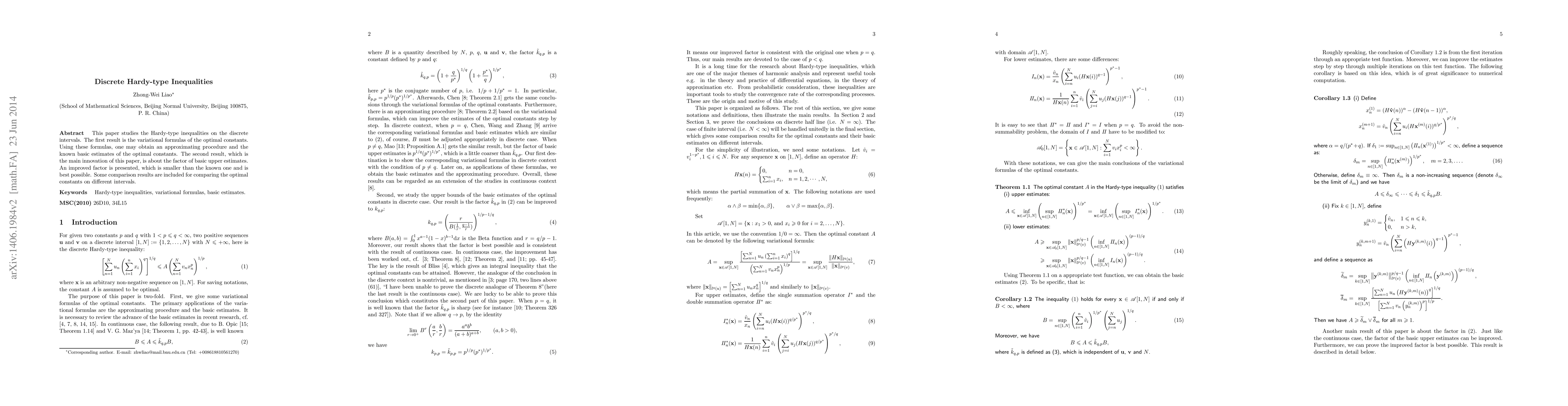 This paper studies the Hardy-type inequalities on the discrete intervals. The first result is the variational formulas of the optimal constants. Using these formulas, one may obtain an approximating procedure and the known basic estimates of the optimal constants. The second result, which is the main innovation of this paper, is about the factor of basic upper estimates. An improved factor is presented, which is smaller than the known one and is best possible. Some comparison results are included for comparing the optimal constants on different intervals.