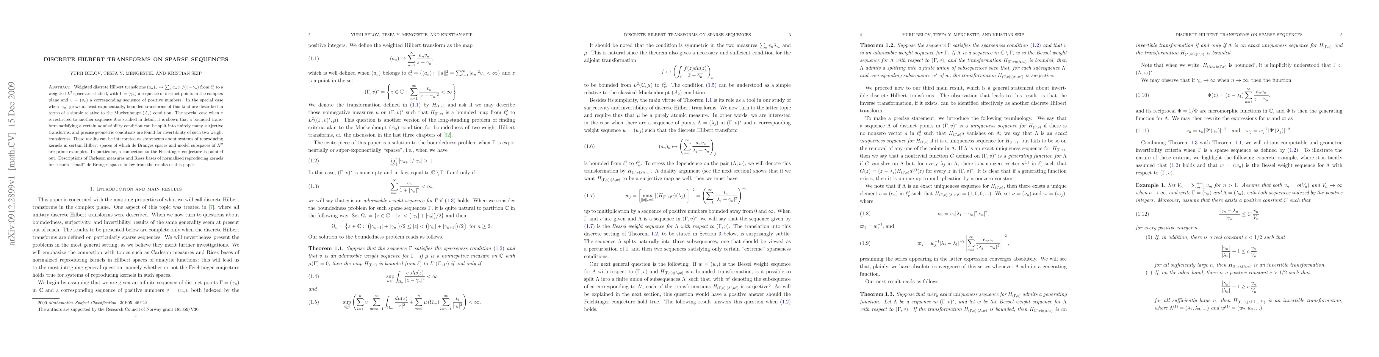 This paper studies weighted discrete Hilbert transforms on sparse sequences, showing that bounded transforms can be described under the Muckenhoupt $(A_2)$ condition when point sequences grow exponentially. It also explores the special case where the transform is restricted to another sequence, revealing precise geometric conditions for invertibility and connections to the Feichtinger conjecture.