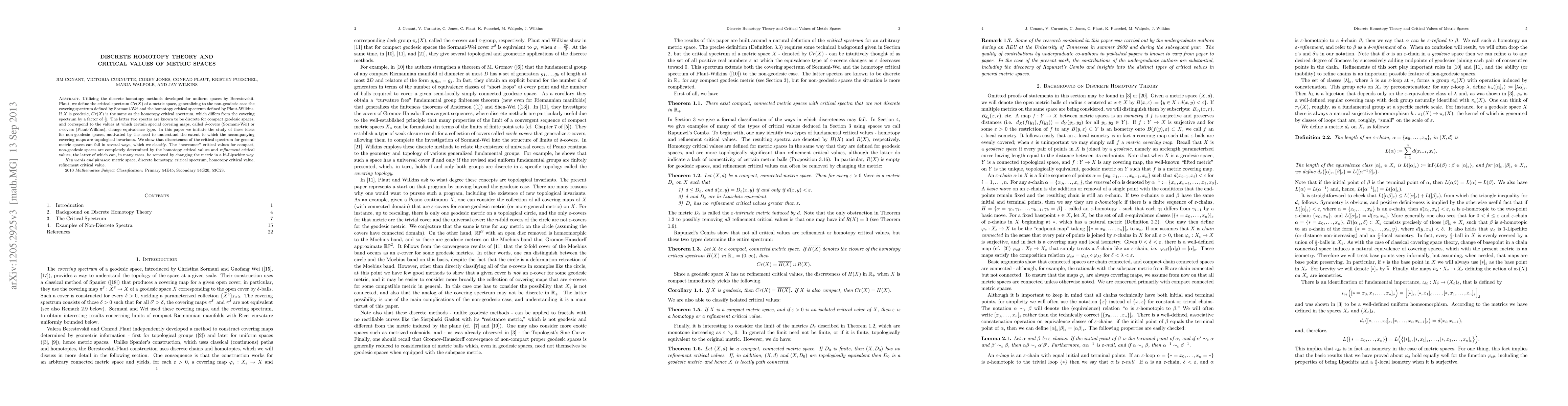 Utilizing the discrete homotopy methods developed for uniform spaces by Berestovskii-Plaut, we define the critical spectrum Cr(X) of a metric space, generalizing to the non-geodesic case the covering spectrum defined by Sormani-Wei and the homotopy critical spectrum defined by Plaut-Wilkins. If X is geodesic, Cr(X) is the same as the homotopy critical spectrum, which differs from the covering spectrum by a factor of 3/2. The latter two spectra are known to be discrete for compact geodesic spaces, and correspond to the values at which certain special covering maps, called delta-covers (Sormani-Wei) or epsilon-covers (Plaut-Wilkins), change equivalence type. In this paper we initiate the study of these ideas for non-geodesic spaces, motivated by the need to understand the extent to which the accompanying covering maps are topological invariants. We show that discreteness of the critical spectrum for general metric spaces can fail in several ways, which we classify. The "newcomer" critical values for compact, non-geodesic spaces are completely determined by the homotopy critical values and refinement critical values, the latter of which can, in many cases, be removed by changing the metric in a bi-Lipschitz way.