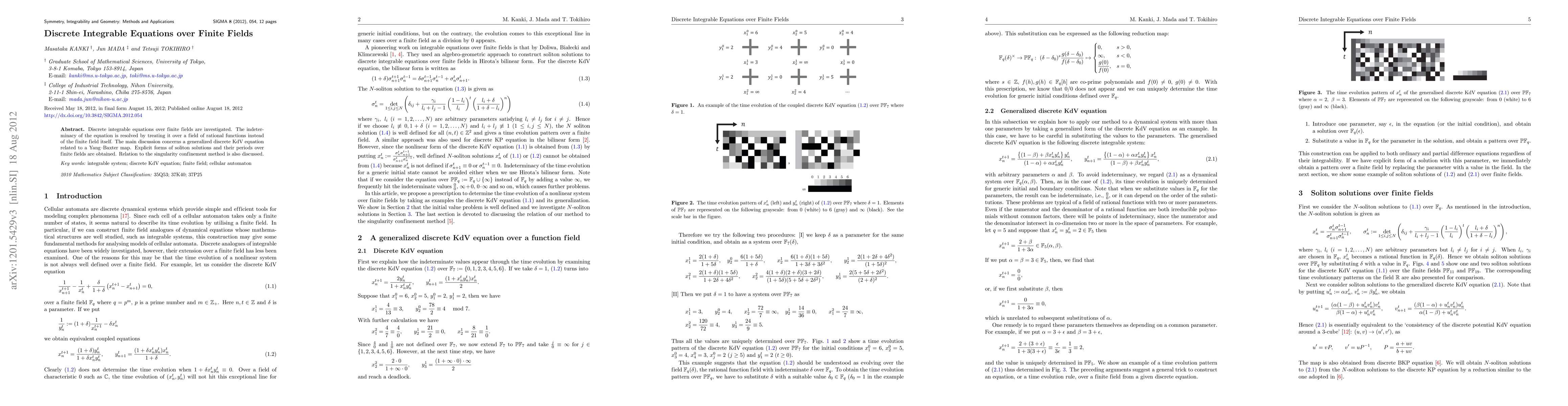 This paper investigates discrete integrable equations over finite fields by resolving indeterminacy through rational functions, focusing on a generalized discrete KdV equation tied to a Yang-Baxter map. It derives explicit soliton solutions and their periods, and explores connections with the singularity confinement method.