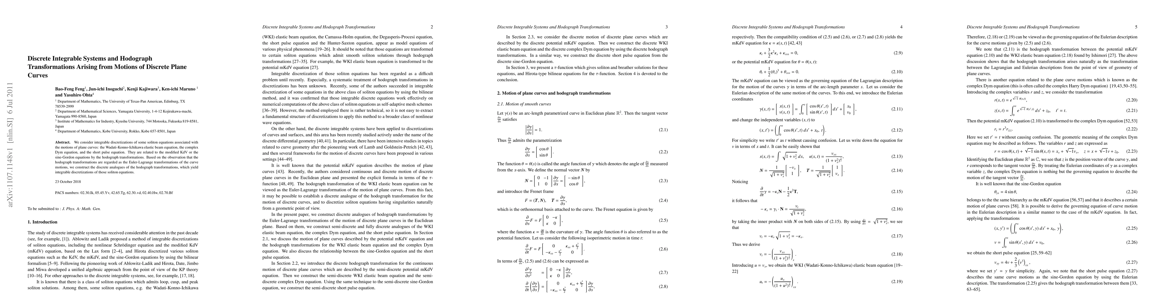 This paper explores integrable discretizations of soliton equations linked to plane curve motions, specifically the Wadati-Konno-Ichikawa, complex Dym, and short pulse equations. It constructs discrete analogues of hodograph transformations, revealing their role as Euler-Lagrange transformations in curve dynamics, leading to integrable discretizations.