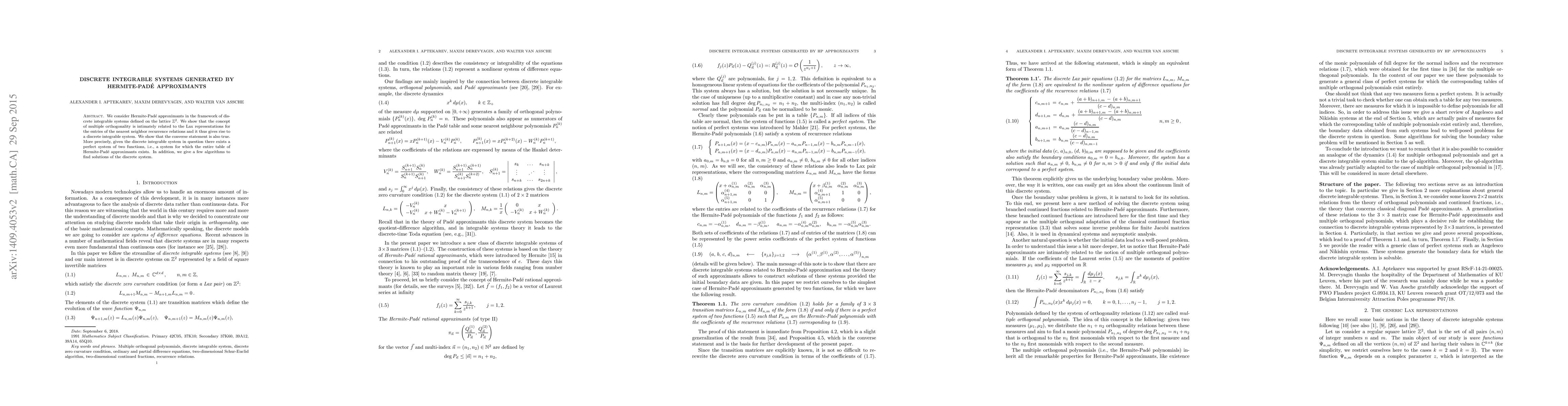 This paper demonstrates a connection between Hermite-Padé approximants and discrete integrable systems on $\mathbb{Z}^2$, showing that multiple orthogonality leads to Lax representations for recurrence relations, forming a discrete integrable system. Conversely, any such system allows for a perfect set of two functions for which Hermite-Padé approximants can be constructed.