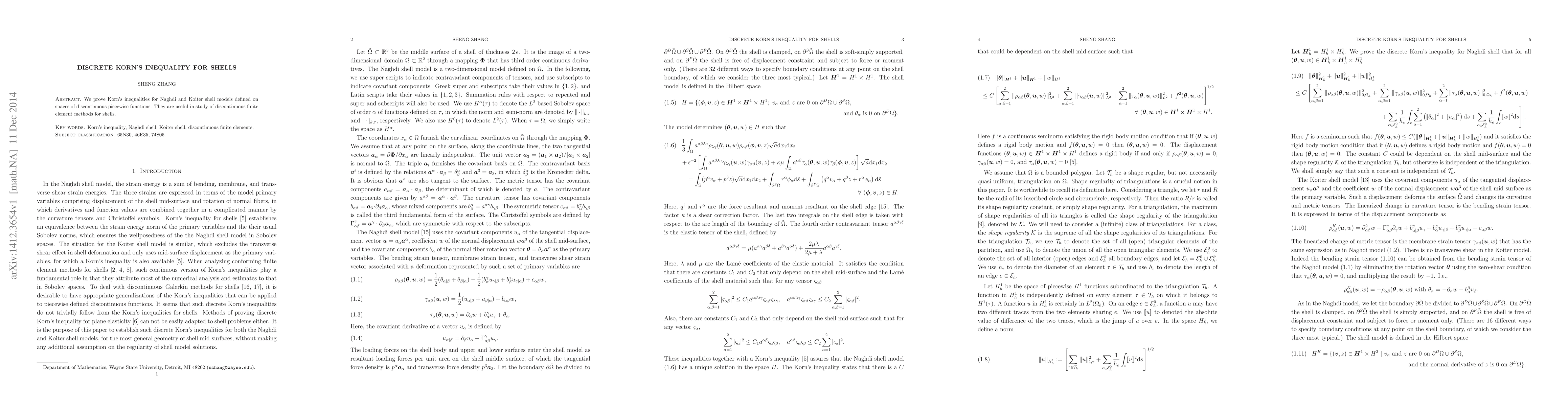 Researchers prove Korn's inequalities for discontinuous piecewise functions in shell models, enabling studies of finite element methods with improved accuracy.