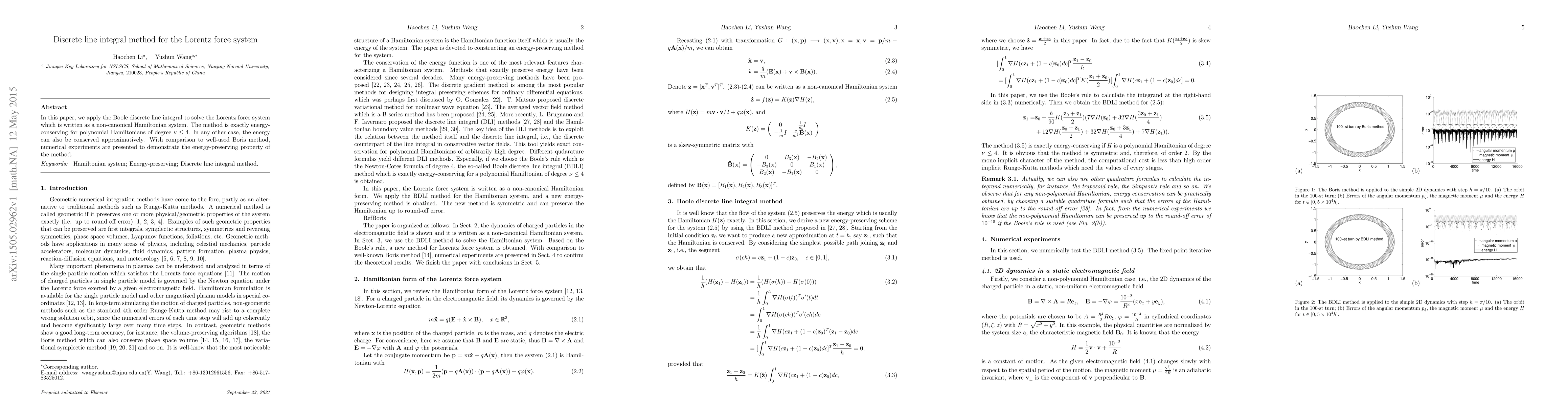 In this paper, we apply the Boole discrete line integral to solve the Lorentz force system which is written as a non-canonical Hamiltonian system. The method is exactly energy-conserving for polynomial Hamiltonians of degree $\nu \leq 4$. In any other case, the energy can also be conserved approximatively. With comparison to well-used Boris method, numerical experiments are presented to demonstrate the energy-preserving property of the method.
