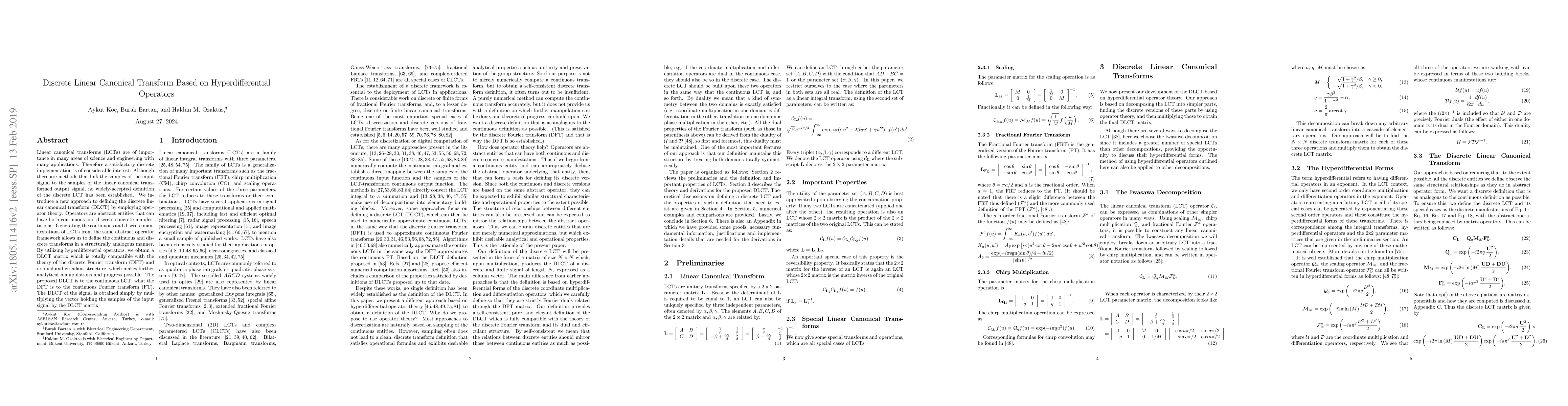 This paper introduces a new discrete linear canonical transform (DLCT) based on hyperdifferential operators, offering a structurally analogous definition to the continuous LCT. The proposed DLCT matrix is compatible with the discrete Fourier transform (DFT), facilitating further analytical manipulations and applications.