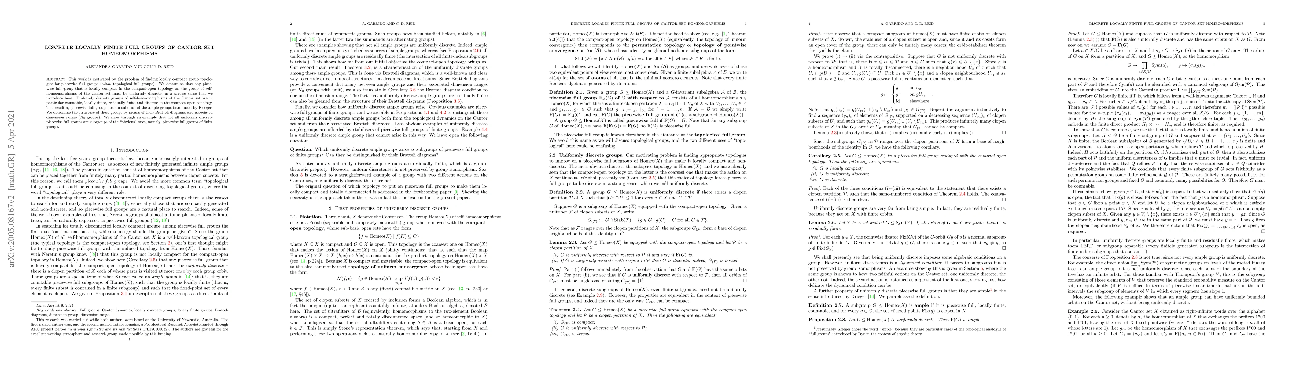 This work is motivated by the problem of finding locally compact group topologies for piecewise full groups (a.k.a.~ topological full groups). We determine that any piecewise full group that is locally compact in the compact-open topology on the group of self-homeomorphisms of the Cantor set must be uniformly discrete, in a precise sense that we introduce here. Uniformly discrete groups of self-homeomorphisms of the Cantor set are in particular countable, locally finite, residually finite and discrete in the compact-open topology. The resulting piecewise full groups form a subclass of the ample groups introduced by Krieger. We determine the structure of these groups by means of their Bratteli diagrams and associated dimension ranges ($K_0$ groups). We show through an example that not all uniformly discrete piecewise full groups are subgroups of the ``obvious'' ones, namely, piecewise full groups of finite groups.