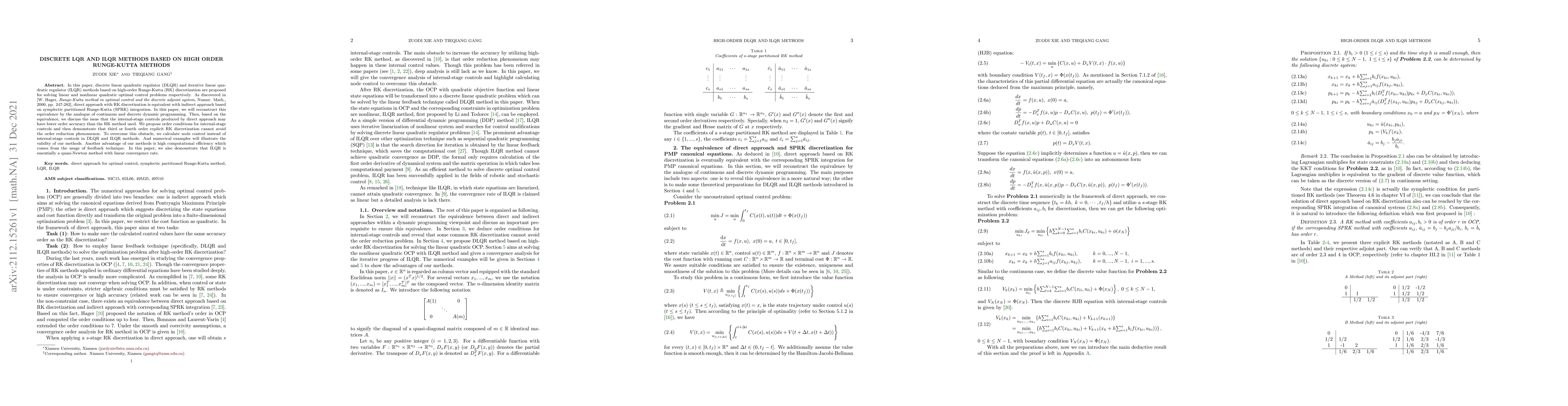 This paper introduces two new methods for solving quadratic optimal control problems: a discrete LQR method using high-order Runge-Kutta discretization and an iterative ILQR method also based on RK discretization. The methods aim to overcome the issue of reduced accuracy in internal-stage controls by using node controls instead.