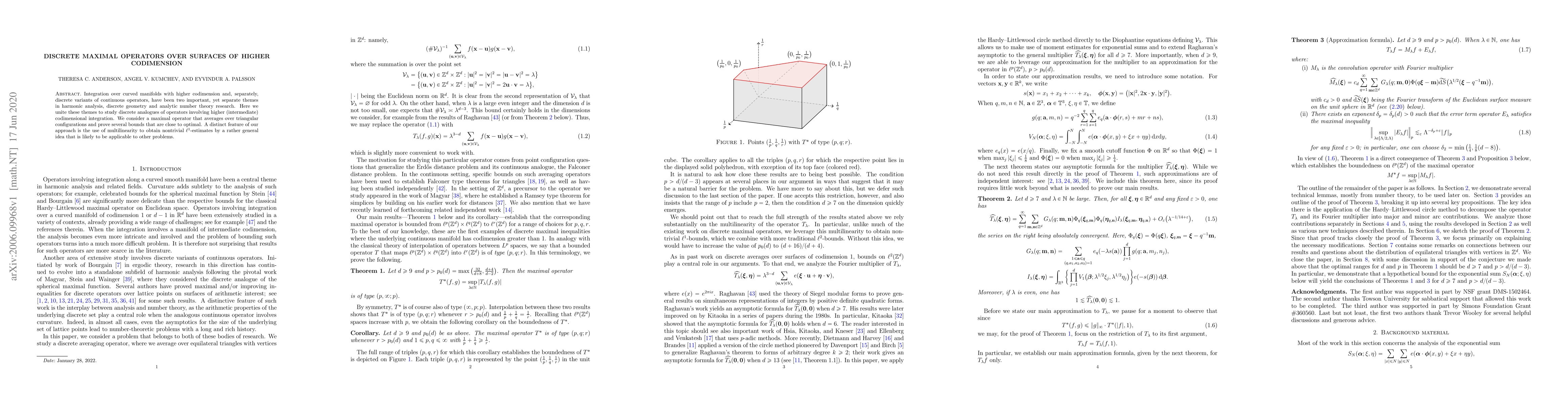 Integration over curved manifolds with higher codimension and, separately, discrete variants of continuous operators, have been two important, yet separate themes in harmonic analysis, discrete geometry and analytic number theory research. Here we unite these themes to study discrete analogues of operators involving higher (intermediate) codimensional integration. We consider a maximal operator that averages over triangular configurations and prove several bounds that are close to optimal. A distinct feature of our approach is the use of multilinearity to obtain nontrivial $\ell^1$-estimates by a rather general idea that is likely to be applicable to other problems.