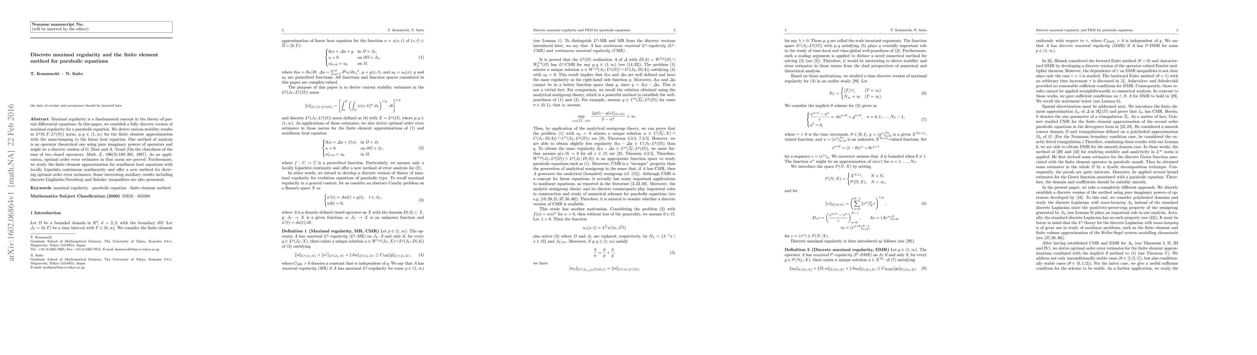 This paper establishes a fully discrete maximal regularity for parabolic equations and derives stability results in $L^p(0,T;L^q(\Omega))$ norms. It applies an operator theoretical analysis to derive optimal error estimates for finite element approximations, including semilinear heat equations with locally Lipschitz continuous nonlinearities.
