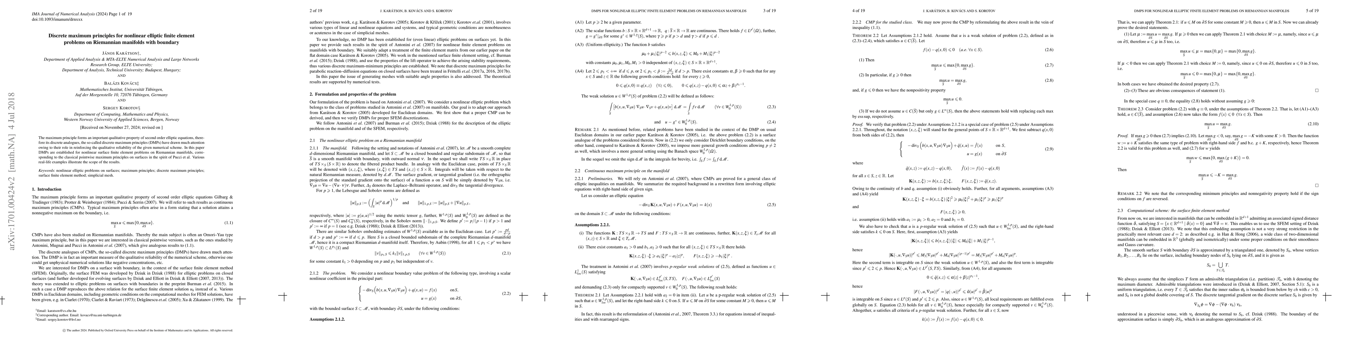 This paper establishes discrete maximum principles (DMPs) for nonlinear elliptic finite element problems on Riemannian manifolds with boundary, extending classical pointwise maximum principles to the discrete level. Real-life examples demonstrate the practical applicability of these results.
