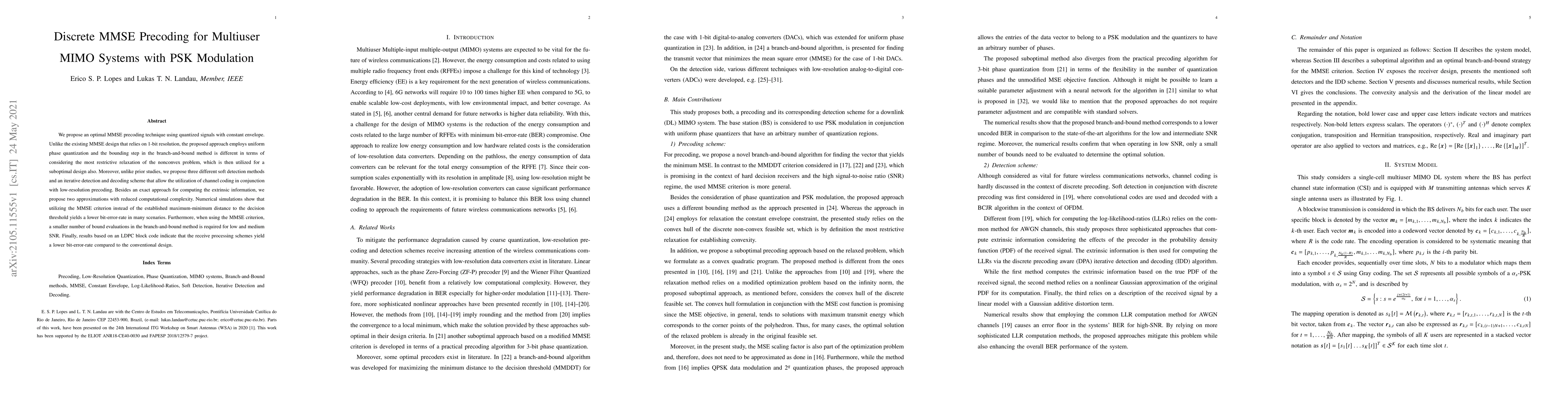 This research paper proposes an optimal MMSE precoding technique for multiuser MIMO systems with PSK modulation, achieving lower bit-error-rates compared to existing designs, especially when using channel coding.