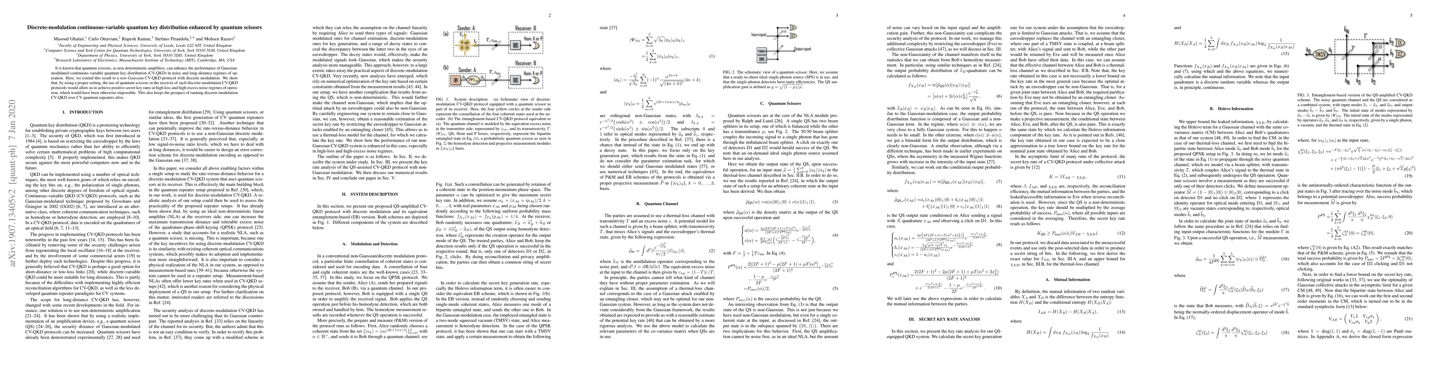 This paper enhances discrete-modulation continuous-variable quantum key distribution (CV-QKD) by integrating quantum scissors, achieving positive secret key rates in high loss and high noise conditions, thus extending the feasibility of long-distance CV-QKD. The use of quantum scissors enables the protocol to operate successfully where traditional methods fail.