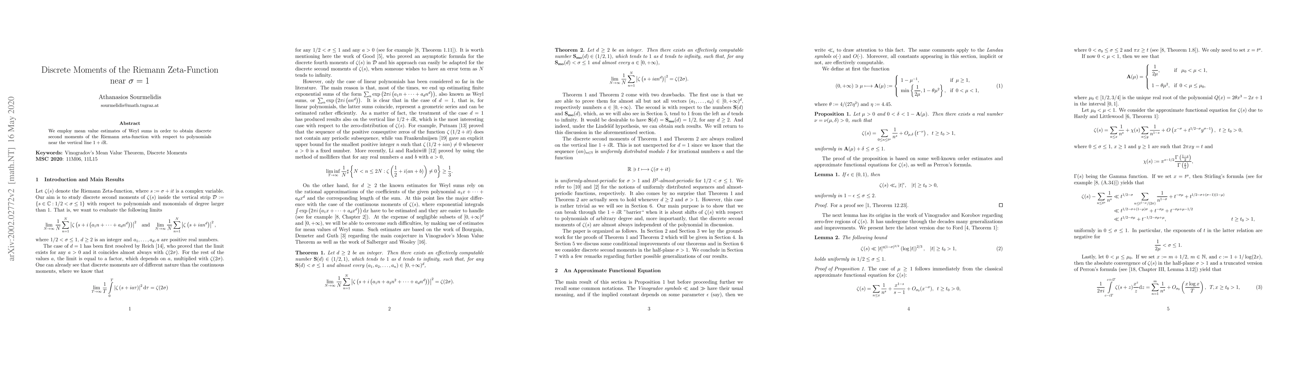 We employ mean value estimates of Weyl sums in order to obtain discrete second moments of the Riemann Zeta-function with respect to polynomials near the vertical line $1+i\mathbb{R}$.