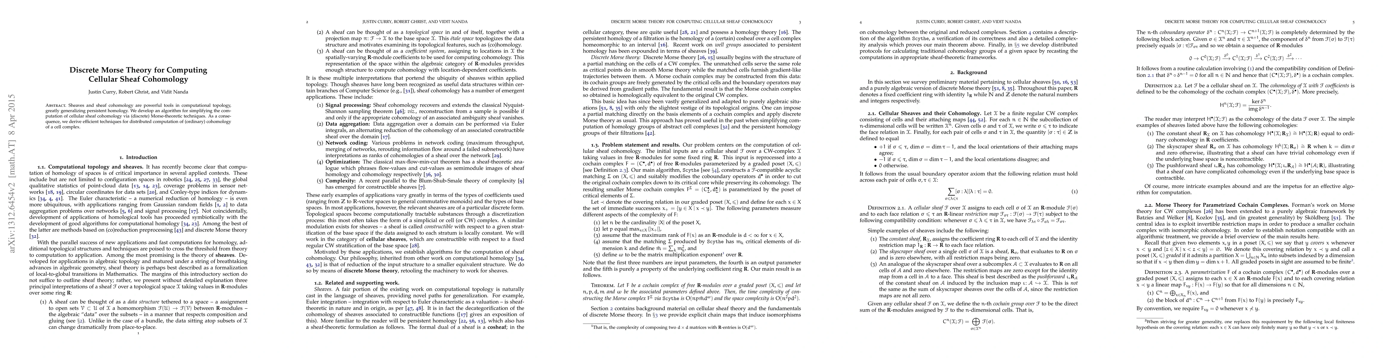This paper presents an algorithm using discrete Morse theory to simplify the computation of cellular sheaf cohomology, extending the capabilities of persistent homology, and introduces efficient methods for distributed computation of ordinary cohomology of cell complexes.