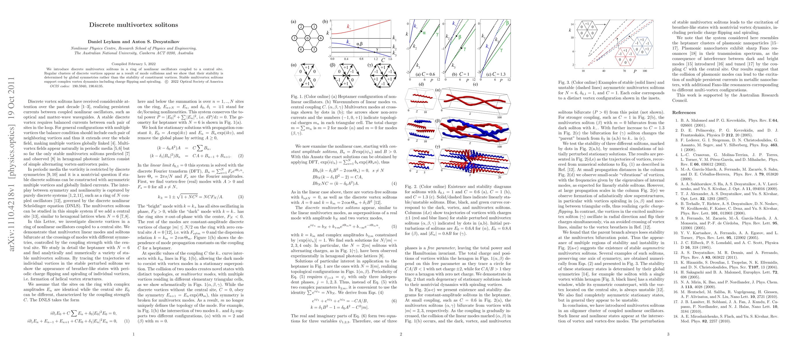 Researchers discovered stable discrete multivortex solitons in a ring of nonlinear oscillators, which support complex vortex dynamics including charge flipping and spiraling, and their stability is determined by global symmetries rather than individual vortices.